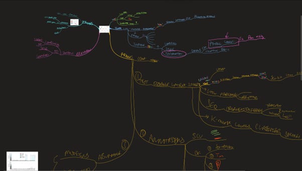 I’ve tried a few times providing ChatGPT/Gemini/Claude Opus with the photo of my mind map and the transcript of my out loud ramblings about the mind map and asked it to see if I recalled most of the information. At the moment most of them don’t succeed very well. This might be because of my Dark background choice (but when I switch to a white background it is still as bad).