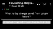 For example, see this flashcard below that I made after I got curious about the smell from some cacao nibs. When I reviewed this flashcard recently, I correctly remembered that it had something to do with fermentation but not that the smell specifically was from ethanoic acid.
